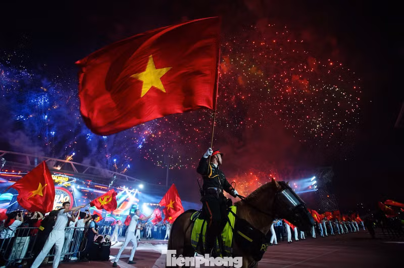 Chương trình nghệ thuật "Âm vang Tổ quốc" khép lại bằng màn pháo hoa được dàn dựng công phu, rực sáng khu vực sân vận động Mỹ Đình. Màn pháo hoa kéo dài gần 10 phút khiến hàng vạn khán giả tại Mỹ Đình vỡ òa trong tiếng hò reo, vỗ tay không ngớt.